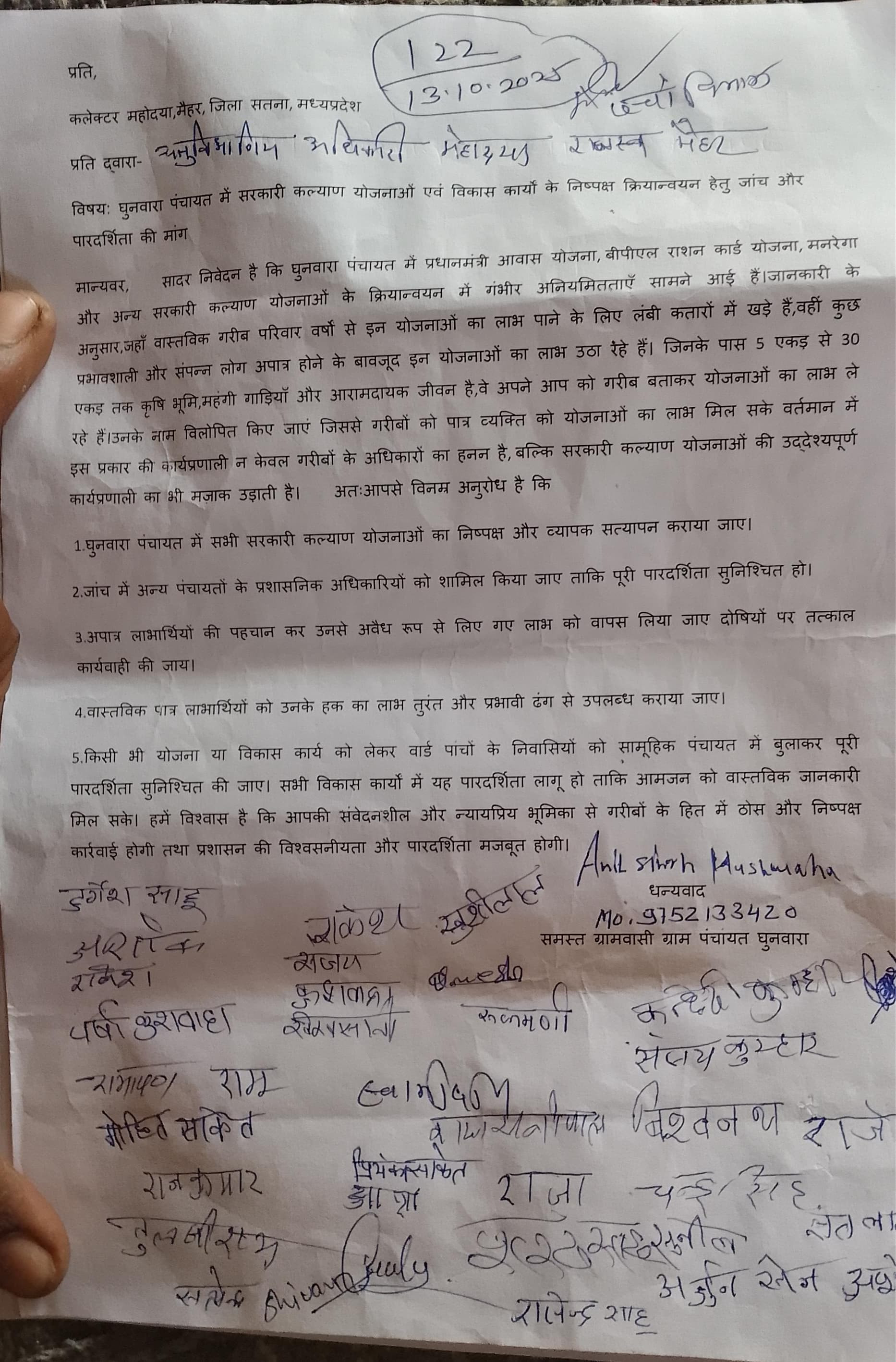 ग्रामीणों ने कलेक्टर से निष्पक्ष जांच की मांग एस डी एम को ज्ञापन