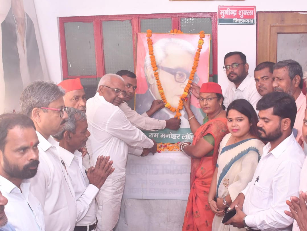 डा० राम मनोहर लोहिया की स्मृति चिन्ह पर पुष्प अर्पण