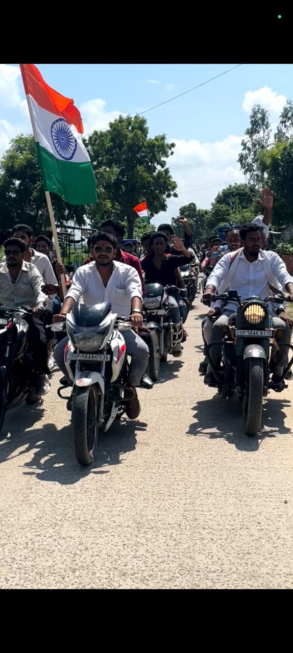 भाजपा युवा मोर्चा मंडल अध्यक्ष देहात हरीशंकर प्रताप कुशवाहा उर्फ स्टार भईया के नेतृत्व में स्वाधीनता दिवस पर शुक्रवार को क्षेत्र के वार्ड नंबर 29 में जिला पंचायत सदस्य पद के प्रत्याशी के नेतृत्व में आज 15 अगस्त के उपलक्ष्य में अपने तमाम कार्यकर्ताओं के साथ करीब 150 बाईकों के संग झनझनपुर से बागापार होते हुए फुरसतपुर तक देहात मंडल में धूमधाम के साथ मोटरसाइकिल रैली निकाला गया ।इस क्रम में क्षेत्र के