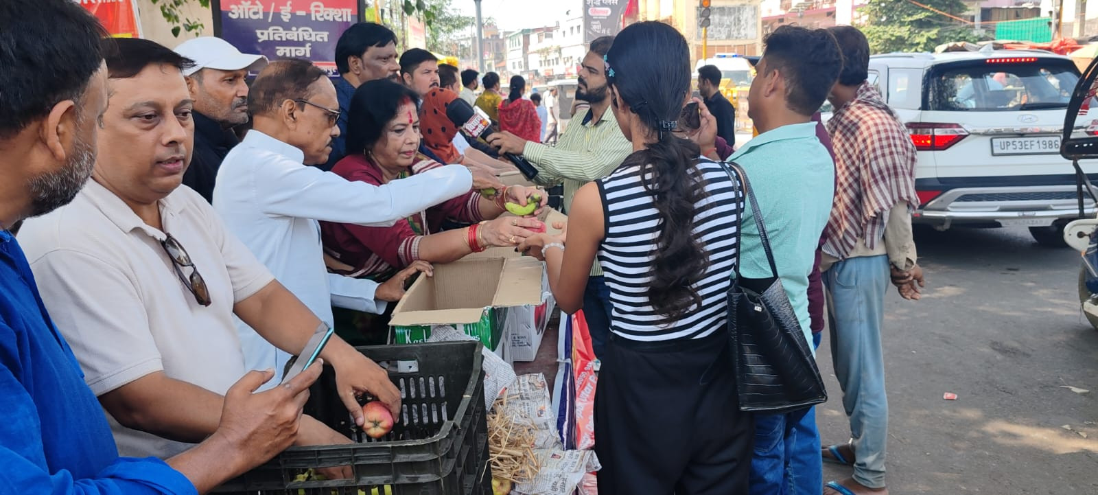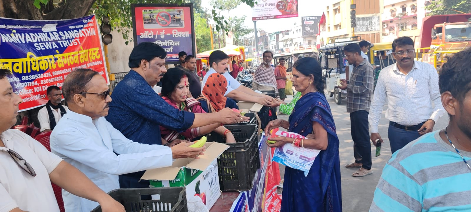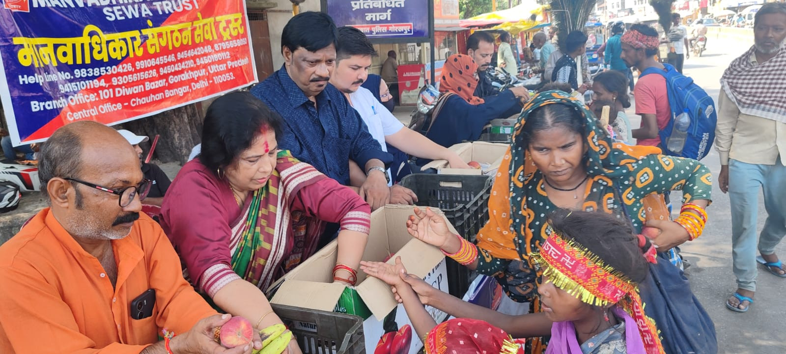 मानवाधिकार संगठन सेवा ट्रस्ट के तत्वावधान में प्रत्येक वर्ष की भांति इस वर्ष भी मां भक्तों को फलाहार कराया गया। कार्यक्रम के मुख्य अतिथि उत्तर प्रदेश व्यापार कल्याण बोर्ड के उपाध्यक्ष दर्जा प्राप्त राज्यमंत्री पुष्पदंत जैन एवं विशिष्ट अतिथि पूर्व महापौर डा. सत्या पांडेय की उपस्थिति में राष्ट्रीय अध्यक्ष मोहम्मद रजी के हाथों फल मां भक्तों में वितरण किया गया। सांप्रदायिक शहर की स्थापना के उद्देश्य से मानवाधिकार संगठन सेवा ट्रस्ट ने शारदीय नवरात्र, दुर्गा पूजा एवं दशहरा के पावन अवसर पर मां भक्तों के बीच फलाहारी कराया जाता है। विगत कई वर्षों से नवरात्रि पर देवी भक्तों को मानवाधिकार संगठन सेवा ट्रस्ट के राष्ट्रीय अध्यक्ष मोहम्मद रजी द्वारा भक्तों में फल का वितरण किया जाता है। इस अनोखी पहल का सभी ने प्रशंसा किया।देवी भक्तों को प्रसाद देकर गंगा- जमुनी तहजीब को चार चांद लगा दिया। इस मौके पर मोहम्मद रजी ने कहा कि हिन्दू मुस्लिम एकता की मिसाल गोरखपुर में सदियों से बनी हुई है। मानवाधिकार संगठन सेवा ट्रस्ट पिछले कई वर्षों से गोलघर स्थित काली मंदिर के सामने नवरात्रि की नवमी को फलाहारी का कार्यक्रम आयोजित किया जाता है। इस मौके पर बड़ी संख्या में उपस्थित देवी भक्तों ने प्रसाद ग्रहण किया।