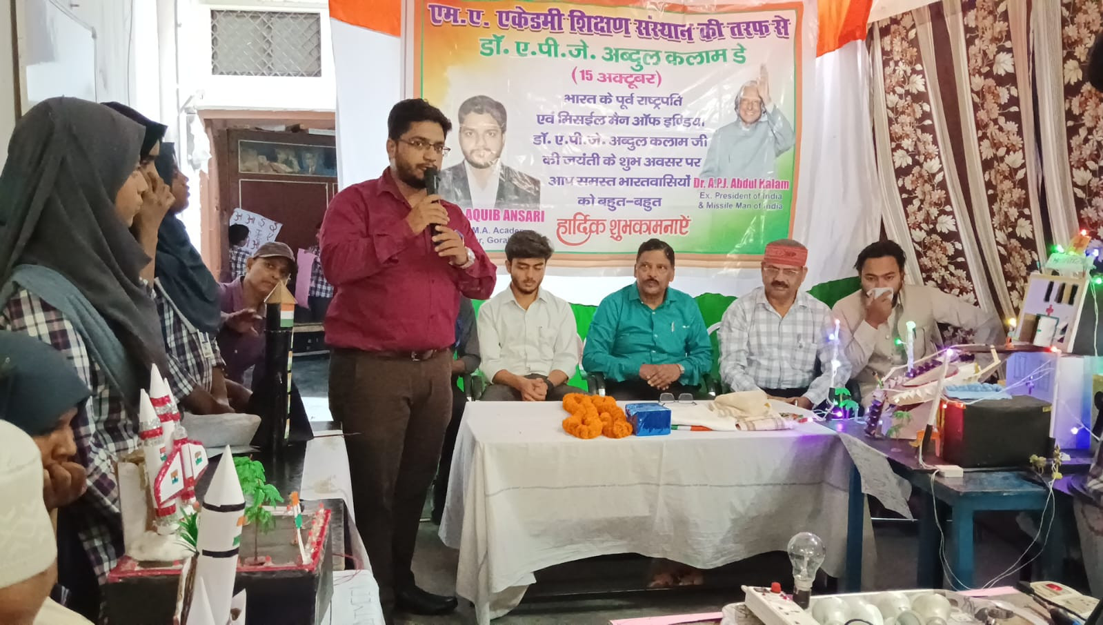 भारत रत्न डॉ. ए.पी.जे. अब्दुल कलाम की जयंती के अवसर पर आयोजित कौशल विकास कार्यक्रम के अंतर्गत एम. ए. एकेडमी, तुर्कमानपुर, गोरखपुर के छात्र-छात्राओं द्वारा लगाए गए प्रोजेक्ट स्टालों का निरीक्षण मुख्य अतिथि गोरखपुर शहर के वरिष्ठ आयुर्वेदिक चिकित्सक एवं मुक्त बधिर विद्यालय के प्रबंधक डॉ अमृतलाल सक्सेना सहित अन्य अतिथियों के द्वारा किया गया। सभी बच्चों के द्वारा लगाए गए प्रोजेक्ट में वाटर एटीएम, एटीएम मशीन, रेलवे स्टेशन, मल्टीप्लेक्स सिनेमा हॉल एवं शॉपिंग मॉल, तरह-तरह की मिसाइलें, फरमाने रसूल, वाटरफॉल आदि आकर्षण का केंद्र था। शुरुआत में सबसे पहले अमायरा आक़िब तिलावत ए कुरान पाक से इस कार्यक्रम का आगाज़ किया। इस अवसर पर राष्ट्रीय स्तर का खिताब अपने नाम करने वाले बाल वैज्ञानिक तैयब अख्तर युसूफ जई को संस्था की जानिब से उनकी हौसला अफ़ज़ाई के लिए सम्मानित किया गया। कार्यक्रम के अंत में रॉकेट का सफल परीक्षण आबादी से दूर मुक्तिधाम पर छात्र व छात्राओं, शिक्षकों एवं सभी अतिथियों की उपस्थिति में किया गया।