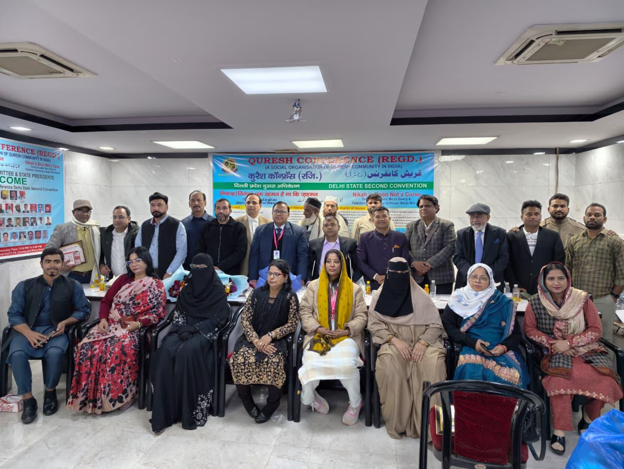The second convention of the Delhi Pradesh Quraish Conference (Regd.) was held at Dr. B.R. Ambedkar Memorial Hall F-19, Connaught Place, New Delhi. The convention began with a recitation of the Quran by Atika Shakeel Qureshi. It was presided over by Sanobar Ali Qureshi, Advocate, Supreme Court and National President of the Quraish Conference, and conducted by Dr. Akhtar Hussain Qureshi, Vice President Delhi Pradesh and Dr. Iftekhar Ahmed Qureshi, Executive President Uttar Pradesh. The chief guest was Rajendra Pal Gautam, Chairman SC Department, Indian National Congress, and the guests of honor were Hon'ble K.P. Chaudhary, General Secretary All India Federation SC/ST Organization, R.R. Bagh, Advocate Supreme Court, Haji Salman Khan, Social Media Influencer, and Mrs. Atika Shakeel Qureshi, CEO Darul Taqwa. Special guests present at the convention included Mr. Anil Verma, Advocate, Mr. Saleem Ahmed Qureshi, National General Secretary Quraish Conference, Mr. Zahid Taj, Advocate, Mr. Aftab Alam Qureshi, President Madhya Pradesh, and Mr. Imran Qureshi, Kasba Kawal, District Muzaffarnagar. The convention's theme was "Marriage is a blessing, not a burden," and "Say yes to education and no to dowry." All the speakers shared their views, emphasizing that the extravagant spending and wasteful expenditure on weddings are having a very negative impact on society, and that the competition among people in every community to establish their identity through expensive weddings is not right. The convention discussed various aspects of marriage, including how to prepare young people for marriage through pre-marital courses and how to empower them to face the challenges of married life effectively. This is crucial to curb the rapidly increasing divorce rates in every community. Some speakers emphasized that daughters should be given their rightful share of inheritance instead of dowry, while others stressed the need for widespread awareness about the rights and responsibilities of husbands and wives and the importance of marriage. All the speakers agreed that the relationship between husband and wife is one of peace and blessing, not a burden. This is why Islam describes this relationship using the analogy of clothing. Many people in the Quraish community are sacrificing their time, money, and abilities to make marriage easier, and the Quraish Conference Delhi Pradesh, recognizing their services, honored them with the "Easy Marriage Warrior" award at the convention. Those honored included Imran Qureshi from Kasba Kwal, Muzaffarnagar district, Firoz Qureshi, Anas Qureshi, Haji Saleem Qureshi, Abid Qureshi, Iqbal Qureshi, and Dr. Iftekhar Qureshi. The chief guest and all the other guests were honored with shawls and mementos. Delhi Pradesh President, Mr. Nizamuddin, also honored all the district presidents with shawls and Easy Marriage Warrior certificates, including Mr. Ayub Qureshi and Mr. Faizan Qureshi. Salim Qureshi, Mr. Naeem Qureshi, Mrs. Shabnam Qureshi, Idris Qureshi, North East District President, Mr. Shah Alam Qureshi, Okhla President, Mr. Nadeem Qureshi, South East District President, Mr. Islam Qureshi, East District President, Mr. Wasim Qureshi, North West District President, Mr. Akil Qureshi, South District President, Mr. Mashkoor Abbas Qureshi, North District President, and finally, Mr. Sanobar Ali Qureshi, National President of the Quraish Conference, in his address, said that the contribution of elders is very much needed in the Easy Nikah (marriage) campaign so that the problems faced by husbands and wives after marriage can be respectfully resolved with the valuable experience of the elders. He also emphasized the need to organize Easy Nikah awareness campaigns in every town, district, and state, involving intellectuals from all religions. Society must ensure that no boy or girl is deprived of marriage due to lack of money, and there is a great need to hold face-to-face and introductory conferences in every community so that all parents can find suitable matches for their sons and daughters. Finally, he stated that the objective of simplifying marriage is to empower people financially, educationally, economically, and politically so that the country develops and all people remain connected to the mainstream of the nation. The Quraish Conference has created a separate department called "Easy Nikah," in which many office bearers are rendering their services. Mr. Qasim Qureshi, General Secretary of Delhi Pradesh, thanked all the guests and respected individuals for making the convention a success.