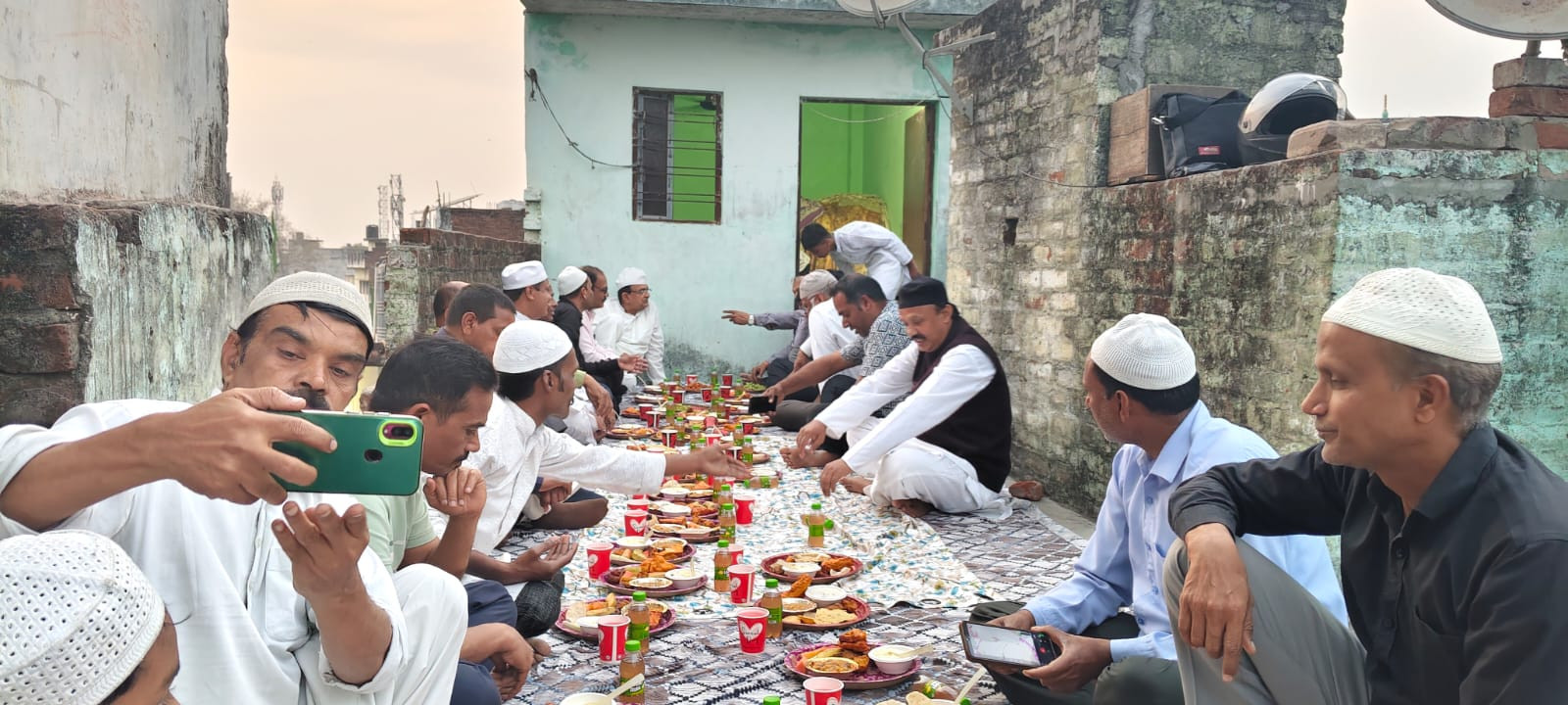 इफ्तार में शर्बत, कोल्ड-ड्रिंक, खजूर, फल एवं कई प्रकार व्यंजन थे।