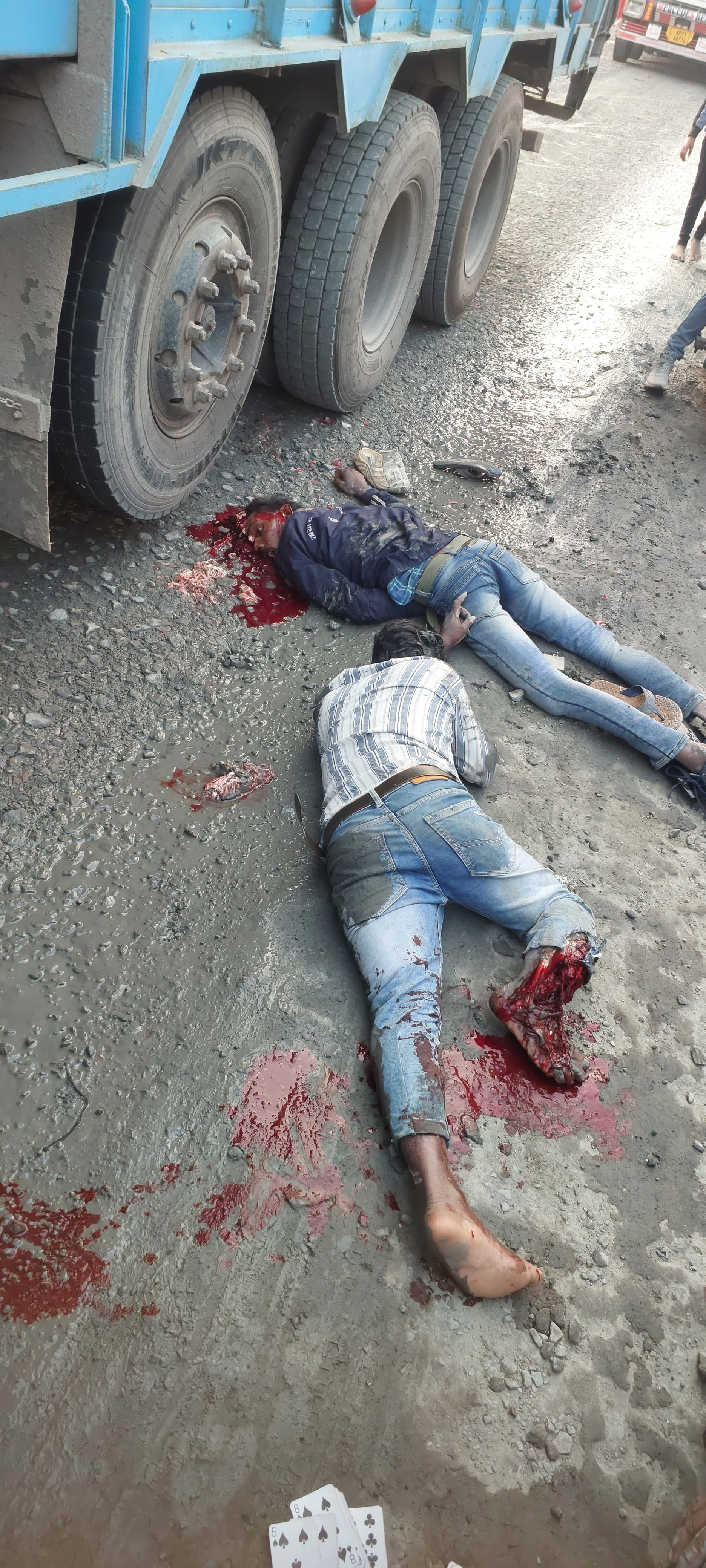 जिले के बाराचट्टी थाना क्षेत्र के निकट एक सड़क हादसे में एक युवक की मौत घटनास्थल पर ही हो गई है ,जबकि दो अन्य युवक बुरी तरह से जख्मी हो गए हैं। मृतक का नाम मुन्नी मांझी पिता सहदेव मांझी है, जो इसी थाना क्षेत्र के बलथर गांव का रहने वाला है। घटना की सूचना पाकर बाराचट्टी थाना की पुलिस ने शव को अपने कब्जे में लेकर अंत्यपरीक्षण हेतु अनुग्रह नारायण मगध मेडिकल कालेज सह अस्पताल दिया भेज दिया है। जबकि घायल दोनों युवकों को युवकों पवन मांझी (26 वर्ष) एवं दीपक मांझी (27 वर्ष )को स्थानीय पीएचसी बाराचट्टी में प्राथमिक उपचार के बाद बेहतर इलाज हेतु गया रेफर किया गया है। घटना के बाद जीटी रोड पर उग्र ग्रामीणों ने काफी प्रतिरोध जताया तथा सिक्स लेन में काम कर रहे अधिकारियों की लापरवाही का नतीजा बताया है। बताया गया है कि एक बाइक पर सवार होकर उक्त तीनों लोग धनगाई से अपने गांव बलथर जा रहे थे। इसी बीच बाराचट्टी थाना से महज चंद दूरी पर सड़क की स्थिति दयनीय होने के कारण बाइक का संतुलन बिगड़ गया और बाइक ट्रक के नीचे आ गया जिससे एक मुन्नी मांझी(40वर्ष) की मौत घटनास्थल पर हो गई, जबकि दो अन्य युवकों का दाहिना पैर ट्रक के नीचे आ जाने से बुरी तरह जख्मी हो गया है। घटना आज शाम 4बजे के करीब है।