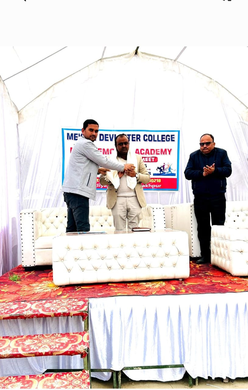 मेवाती देवी इंटर कॉलेज एवं एम.एच.एस. मेमोरियल एकेडमी के संयुक्त तत्वावधान में आयोजित वार्षिक त्रिदिवसीय क्रीड़ा समारोह का सफल आयोजन किया गया। समारोह का उद्घाटन विद्यालय के प्रबंधक श्री अभिषेक कुमार त्रिपाठी ने क्रीड़ा स्थल पर माँ सरस्वती की प्रतिमा के समक्ष दीप प्रज्वलित कर किया। इस अवसर पर प्रधानाचार्य श्री आर.एम. पाण्डेय ने माँ सरस्वती के चित्र पर माल्यार्पण कर खिलाड़ियों का परिचय प्राप्त किया। कार्यक्रम में विद्यालय के वरिष्ठ शिक्षक दिलीप कुमार त्रिपाठी सहित अन्य शिक्षकगण उपस्थित रहे।
