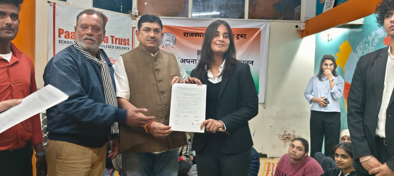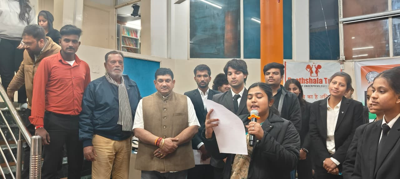 Rajasthan Education Trust organized a Legal Awareness Program. The event was conducted at the Kathputli Nagar Center of Pathshala Trust under the leadership of Dr. O.P. Tank by students of the 13th Internship Program of Chiranjee Lal Agarwal Library, Rajasthan High Court. During the program, the library internship students, under the guidance of Program Head Rishi Agarwal, Coordinator Advocate Diksha Yadav, and Advocate Rupali Chauhan, informed the children of Pathshala about their fundamental rights and duties. On this occasion, Dr. O.P. Tank encouraged the internship students by awarding them certificates. He also gave his consent to conduct future Legal Awareness Programs with these 15 interns. The interns expressed their gratitude to Om Prakash Gurjar, Dr. O.P. Tank, and all other contributors for their support.